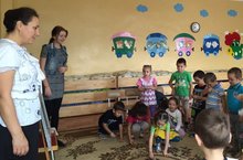 Уртанчылар төркеменә йөрүче балалар "Яфраклар оча" дигән хәрәкәтле уен уйнадылар. Яфракларның төсләрен, нинди агачныкы булуын