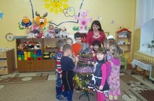 В течение недели дети выполняли апликацию на тему: "Бусы на ёлку", читали сказки, стихи "Песня Снегурочки" и др., составляли письмо Дедушке Морозу, оформили поздравительные открытки, наряжали ёлку, пели песни, танцевали.