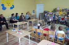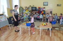 В День открытых дверей дети второй младшей группы побывали на "цирковом представлении". В цирке они помогли дрессированной собачке посчитать кружочки ("один", "много"), а клоунам (большому и маленькому) подбирали игрушки, музыкальные инструменты, одежду и обувь. В заключении клоуны поиграли с детьми в игру "Где звенит погремушка". (впереди, сзади, слева, справа). Вместе с малышами цирк посетили студенты АПК и родители.