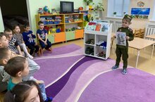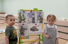 Икенче иртә яштэге балалар төркемендә "Ил сагында кемнәр тора" дип исемләнгән темага әңгәмә булып үтте. балалар хәрби хезмәт, гаскәр төрләре һәм шулай ук хәрби техника турында рәсемнәр карадылар. Бу өлкәдә эшләуче хәрби кешеләргә карата хөрмәт булдырдылар.