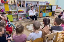 Арча педагогия көллияте студенты Нәргизә Нәфис кызы уртанчылар төркеме балаларына әкият укыды. Балалар бик кызыксынып тыңладылар, рәсемнәр карадылар, сорауларга дөрес итеп җавап бирделәр. Физик күнегүләр ясап ял да итеп алдылар. Балалар әкиятләр аша дус, тату, бердәм, ярдәмчел булырга өйрәнәләр.