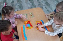 Для детей старшего дошкольного возраста, проверяли умения детей самостоятельно выполнять задания в условиях соревнования. Дети с интересом закрепили счет в пределах 10, сравнивали предметы, расставляли палочки по высоте и выкладывали геометрические фигурки... Вот как интересно проходят наши занятия!
