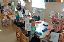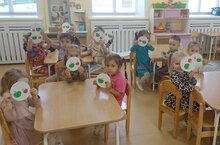 Кечкенәләр төркемендә "Тәлинкәдә зур һәм кечкенә алмалар" дигән темага кисеп ябыштыру шөгыле узды. Балалар түгәрәк предметлар ябыштырырга өйрәнделәр. Предметларның зурлыгы буенча аермасы турындагы күзаллауларны һәм ябыштыруның дөрес алымнарын ныгыттылар.