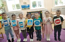 Уртанчылар төркеме балалары белән "Иң яхшы дустым-светофор" дигән темага әңгәмә үткәрдек. "Юл аркылы дөрес чык" уенын уйнадык. Балаларның юл йөрү кагыйдәләре, юл билгеләре турында белемнәрен ныгыту һәм киңәйтү өстендә даими эш алып барабыз.