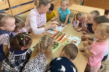 Балалар белән табигатьнең үзгәрүе, көзнең килүе, көз килү белән уңыш җыеп алу турында сөйләштек. Яшелчәләрне танып белү кунекмәләрен ныгыттык. -