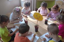 Бүген бакчабызда рәсем сәнгате көне. Икенче кече яшьтәге төркемгә йөрүче балалар "Кояшлы җылы көн" дигән темага рәсем ясадылар. Бурычлар: кояшның нурларын ясарга, бер юнәлештә сызыктан чыкмыйча буярга өйрәтү.