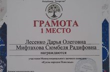 Воспитатели нашего детского сада Лесенко Д.О и Мифтахова С.Р. приняли участие в межрегиональном конкурсе «Куклы народов Поволжья» и по итогам конкурса заняли призовое 1 место.