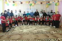 Наши самые маленькие воспитанники присоединились к поздравлениям.