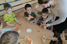 Сегодня в старшей группе совместно со студентами ГАПОУ "Арский педагогический колледж им. Г. Тукая" было проведено конструирование игрушки из конуса "Лиса". Цель занятия :развитие пальцевой моторики при изготовлении объёмной игрушки из конусов. Задачи :развивать логическое внимание, соотношение элементов игрушки по величине и пропорции./Бүген зурлар төркеменә йөрүче балалар, Габдулла Тукай исемендәге Арча педагогик көллиятендә укучы студентлар белән берлектә, конструктор шогыле вакытында конуслы формада булган уенчык "Төлке" ясадылар. Максат: балаларга бармакларның төрле моторик алымнар белән нинди дә булса уенчыклар ясап булуын аңлату. Эш барышы: балаларда уенчыкларның күләмен арттырганда игътибарлы булырга өйрәтү.