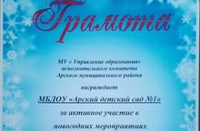 Коллектив нашего детского сада награжден Грамотой МУ "Управления образования" за активное участие в новогодних мероприятиях!