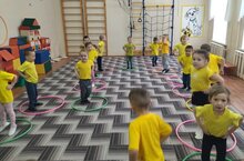 Воспитанники младшей группы очень любят заниматься физкультурой. Для данного вида деятельности в детском саду созданы все условия: физкультурный зал, физкультурное оборудование, спортивный инвентарь.На занятиях физкультуры дети учат прыгать на двух ногах, бегать, приседать, ползать, делают упражнения,бросать и ловить мячик и др.Самые маленькие воспитанники любят играть в подвижные игры «Пузырь», «Зайка», «Мышки и мишки». Сегодняшнее занятие физической культуры в детском саду - кропотливая работа педагогического персонала и родителей над развитием физических качеств и укреплением здоровья детей. Дети любят физкультуру, любят заниматься физкультурой. А мы – взрослые очень хотим, чтобы наши дети были здоровыми./Кече төркем тәрбияләнүчеләре физкультура белән шөгыльләнергә бик яраталар. Әлеге эшчәнлек төре өчен балалар бакчасында барлык шартлар да тудырылган: физкультура залы, физкультура җиһазлары, спорт инвентаре.Физкультура дәресләрендә балалар ике аякта сикерергә, йөгерергә, утырырга, күнегүләр ясарга,туп ыргытырга өйрэнэлэр. Иң кечкенә тәрбияләнүчеләр «Көбек», «Куян», «Тычканнар һәм аюлар» кебек хәрәкәтле уеннар уйнарга ярата. Бүгенге балалар бакчасында физик культура дәресе- педагогик персоналның һәм ата-аналарның физик сыйфатларын үстерү һәм балаларның сәламәтлеген ныгыту буенча тырыш хезмәте. Балалар физкультура белән шөгыльләнергә яраталар. Ә без балаларыбызның сәламәт булуын телибез.
