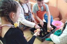 Сегодня дети подготовительной группы посадили лук.