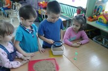 Это неделя в нашем садике посвящена поисково –исследовательской деятельности. Ежедневно воспитатели всех групп проводят беседы и эксперименты по открытию для детей нового и неизведанного. В средней группе №2была проведена беседа о свойствах песка.Дети познакомились со свойствами сухого и мокрого песка, опытным путем проверили песок на сыпучесть, способность пропускать воду. Малыши самостоятельно убедились, что песок стоит из очень мелких частиц - зернышек – песчинок. Радости детей не было предела, ведь играть и одновременно забавно экспериментировать - это и есть познание мира, в котором живешь, который необходимо беречь! -