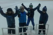 Бүген мәктәпкә әзерлек төркеме малайлары, тәрбиячеләр белән боз сараена кунакка юл тотты. Әти-әниләре белән боз сараена барганнары булса да, алар бик сөенеп барырга булдылар. Балаларны боз сарае җитәкчесе Илһам Мәхмүтович Шакиров, тренерлар каршы алдылар. Тренерлар балалар белән бозга басу алдыннан әңгәмә үткәрделәр, тимераяклар биреп, бозга чыгардылар, ничек итеп боз өстендә дөрес тору күнегүләрен күрсәттеләр. Балалар тырыша-тырыша боз өстендә шуарга өйрәнү күнегүләрен үзләштерделәр. Аларның йөзләре шатлыклы елмаюдан балкыды. Киләчәктә менә шушы кечкенә генә гәүдәле малайлардан, бөек хоккей уйнаучылар килеп чыгар әле! Уңышлар сезгә, нәни спортчылар!
