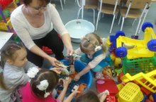 Поиграв с любимыми игрушками, дети старшей группы под руководством воспитателя Гиззатуллиной Ф.Д. послеобеденное время решили посвятить мытью игрушек. Педагог, применив игровой приём и вызвав интерес к этой приятной, весёлой и заботливой трудовой деятельности, смог решить такие задачи развития и воспитания, как трудолюбие, ответственность за порученное дело, умение прийти на помощь сверстникам, доводить начатое дело до конца, получая большое удовольствие и наслаждение от выполненной работы.