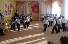 Под марш С. Сайдашева мальчики старших групп вышли в зал для празднования Дня защитника Отечества. 19.02.2015