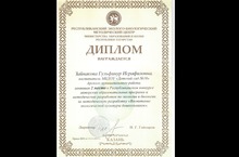 Поздравляем нашу коллегу воспитателя подготовительной группы Зайнакову Гульфинур Исрафиловну с победой в профессиональном конкурсе, получившая Диплом Республиканского конкурса авторских образовательных программ и методических разработок по экологии и биологии.