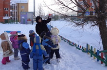 Благодаря творчеству и мастерству наших педагогов и родителей осуществлён проект построек из снега и льда на тему «В гостях у сказки». Наши поделки отличились не только сказочными персонажами, но и функциональными особенностями: дельфин – кольцеброс; снежный лабиринт для ходьбы, бега и ориентировки в пространстве детей; крепость -для метания; для развёртывания сюжетно-ролевой игры «В гости к трём медведям» - сами сказочные персонажи, ожидающие гостей; для прохождения по ограниченной и возвышенной плоскости с целью развития у детей координации движения – змея; для скатывания – горки; и …, конечно же ёлочки – для вождения хороводов с весёлыми Дедом Морозом, Снегурочкой и Снеговиками. Всё эти постройки сделаны с любовью для эстетического наслаждения взрослых и детей, а также для развития основных видов движений наших воспитанников.