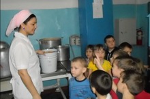 Повара рассказали о приготовлении пищи и показали кухонную посуду и оборудование: большие кастрюли, сковородки, половники, шумовики, мясорубки, холодильные камеры и т.д. Ребята были удивлены, что в котёл для супа может поместиться каждый из них. Дети рассказали поварам о любимых блюдах и поблагодарили за вкусные супы, котлеты и биточки.