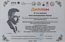 V нче Бөтенроссия шигырь сөйләүчеләр конкурсында безнең балалар бакчасыннан 1 нче уртанчылар төркемендә тәрбияләнүче Нигъмәтҗанова Ралия катнашты. Ул 3 нче дәрәҗә диплом белән бүләкләнде. Аңа тагын яңа үрләр, уңышлар телибез.