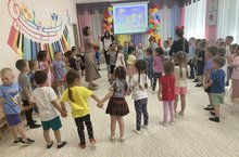 На праздник пришла в гости Дюдюка, клоун «Клепа».Они играли в весёлые игры и эстафеты и подарила детям хорошее настроение. Было приятно видеть радостные детские лица и слышать весёлый детский смех.
