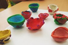 Дети младшей группы с особым интересом лепили татарскую национальную посуду- пиалу, используя знакомые приёмы лепки. Процесс лепки шел увлекательно и интересно.