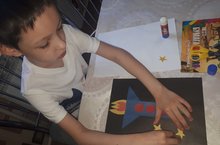 Космос – это интересно, необычно, загадочно! А наша страна имеет особое отношение к этой теме: спутник, Белка и Стрелка и первый человек покоривший космос, Герой Советского Союза летчик-космонавт Юрий Алексеевич Гагарин!Мы не оставили без внимания это событие. Дети вместе с родителями просмотрели презентацию о космосе, о знаменитых космонавтах, солнечной системе, в которой находится наша планета Земля, узнали о Луне спутнике Земли. А еще ребята познакомились с историей развития авиации и космической ракеты и сделали аппликацию на тему «Ракета». Я думаю, что ребята получили массу положительных эмоций и хорошее настроение.
