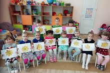 1 нче уртанчылар төркемендә, кисеп-ябыштыру вакытында балалар бик теләп алтын көнбагышлар ясадылар. Башта көзнең матурлыгын, сихри гүзәллеген, байлыгын тасвирладылар. Эш барышының төп максаты: балаларда табигатькә карата мәхәббәт уяту һәм аны күрә, аңлый белергә өйрәтү иде. Һәрберсе тырышып, кызыксынып эшлэделәр.