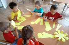 1 нче номерлы уртанчылар төркеме бүген үзләренең яраткан шөгылен башкардылар. Кисеп-ябыштыру шөгылендә кояш ясадылар. Бу эшне балалар яратып һәм дөрес башкарырга тырыштылар. Ясаган кояшлары балаларның һәм тәрбиячеләрнең күңелләрен күтәрде.