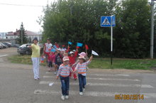 В рамках недели дорожного движения дети средней группы вместе с воспитателем Медниковой Г. З., музыкальным руководителем Абдуллиной Ю. И., помощником воспитателя Зиатдиновой З. Ш. провели пешую экскурсию на центральный стадион города Арск. Во время экскурсии дети вспоминали правила дорожного движения, играли в подвижные игры.