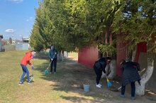 В рамках мероприятий по благоустройству территорий сегодня в детском саду прошел субботник по очистке прилегающей к детскому саду территории: проведена влажная уборка теневых навесов с применением дезинфицирующего раствора; подметены и очищены прогулочные площадки от мусора. В субботнике участвовали 18 работников.
