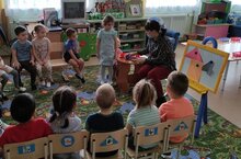 Ел дәвамында без бакчабызда төрле төркемнәрдә әкиятләр карыйбыз .Мәсәлән,”Сертотмас үрдәк”,”Кто сказал, мяу?”,”Бүре һәм кәҗә бәтиләре”,”Колобок”,”Чуар тавык”,”Теремок”,”Три поросенка” һәм башка әкиятләр.Балалар әкиятләрдә уйнаганда рольләрне бик теләп үзләштерәләр. Һәр бала катнашучы һәм караучы буларак функция үти. Алар үзләренең хаталарын, ялгышларын күрергә өйрәнәләр һәм тагын да матуррак, аңлаешлырак уйнарга тырышалар.