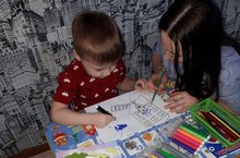 Нам по плечу любое дело, если только захотим,Вам на клочке бумаги белой мы в красках мир изобразим.Таится радость в каждом цвете, рисует чудо карандаш…Как много красок на планете, взгляни – ка на рисунок наш;Синее небо, жёлтое солнце,Склоны высоких коричневых гор…Зелень деревьев, красные макиИ голубые просторы озёр. -
