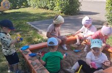 Одним из самых любимых занятий детей в детском саду на прогулке в тёплое время года является игра в песочнице. В ней можно придумать великое множество увлекательных построек, игр, сюжетов. Детям достаточно одной лопатки или совочка.