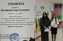 Сегодня воспитатель нашего детского сада Алина Рустамовна приняла участие в районном конкурсе на лучшую авторскую дидактическую игру "Игра - дело серьезное" и заняла 2 место. Поздравляем!