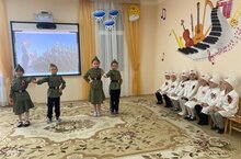 Балалар бакчасы хезмәткәрләре һәм бакчада тәрбияләнүчеләр Бөек Ватан сугышына багышланган Парадта катнаштылар. -