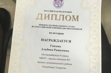 Ученица 9Б класса Гаязова Альбина Рамилевна стала призером Регионального этапа Всероссийской этапа олимпиады по истории.