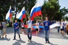 День Нептуна начался с клятвы ребят. Они поклялись, что всё лето будут мыться, плескаться, купаться и нырять в реке, море. После клятвы прошло несколько конкурсов. А самым необычным оказался конкурс, в котором ребята написали на асфальте слово «Нептун» струёй воды из пластиковых бутылок. И тем самым они разбудили владыку морского Нептуна! Он явился не один, а со своей свитой - русалочками. Царь морской попросил их развеселить, так как на дне морском жить скучно и грустно, кроме водорослей и рыб ничего нет. Ребята исполнили для него весёлый танец.