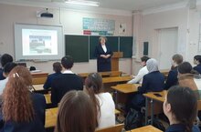«Туган илебез кайдан башлана?" проекты кысалары максатыннан Арча муниципаль районының иҗтимагый советы рәисе Н.Р. Мифтахетдинова 10 нчы А сыйныфы укучыларына Арча районының истәлекле урыннары турында сөйләде. «Ватаныбыз кайдан башлана?» исеме астындагы әңгәмәдән укучылар туган шәһәребезнең мәдәни мирас объектлары турында бик күп кызыклы мәгълүмат алдылар. Арча шәһәренең борынгы биналарын, һәйкәлләрен белү викторинасы үткәрелде, укучыларыбыз зур кызыксыну белән катнаштылар, актив булдылар.