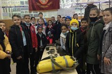 Укучыларга хәрби-патриотик тәрбия бирү максатыннан,сыйныф җитәкчесе Камалиева Г.С.5нче Б сыйныфы укучылары белән ДОСААФ бинасында урнаштырылган күргәзмә белән таныштылар.Балалар ТР ДОСААФ ының "Мобиль музее" проекты кысаларында , ДОСААФ та белем алган бөек шәхесләр,оборона оешмасы белән бәйле булган Советлар Союзы Геройлары белән таныштылар.Экскурсия бик эчтәлекле булды,укучыларда зур кызыксыну уянды.