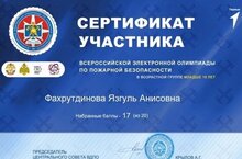 Янгын куркынычсызлыгы буенча электрон олимпиадада катнаштык. 02.10.2024 Янгын куркынычсызлыгы темасы балалар бакчасының тәрбия-белем бирү процессында аерым урын алып тора. Төп бурычларының берсе - балаларда янгын куркынычсызлыгы нигезләрен формалаштыру, саклану чараларвн өйрәтү. Янгын куркынычсызлыгы буенча районыбызда да, балалар бакчасында да төрле чаралар үткәрелеп тора. Ил күләмендә үткәрелгән электрон олимпиадада Фахрутдинова Язгөл катнашты.