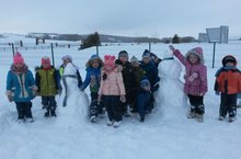 Февраль - кышның соңгы ае. 28.02.2019 Саф һавада күзәтүләр вакытында кояшның күбрәк җылытуын ачыкладык. Түбәләрдән боз сөңгеләрен күзәттек. Җепшек карны тәгәрәтеп кар бабай ясадык. Бергәләшеп уйнавы күңелле. --