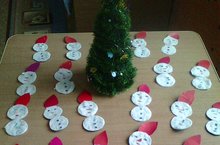 Тиздән Кыш бабай килер дип көтәбез. Берүзенә генә бөтен балаларга бүләк өләшүе авыр булыр дип, без яңа ярдәм итәр өчен кисеп ябыштыру шөгылендә Кар бабайлар ясадык.