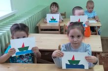 Аппликация 26.10.2018 Тема: "Лодки плывут по реке" средняя группа Цель: Формирование у детей умения создавать изображения предметов, срезая углы у прямоугольника.