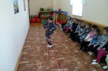 -Закреплять умение двигаться в пространстве в заданном направлении в соответствии условными обозначениями.