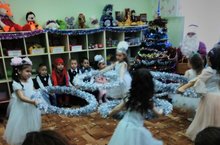 Бүген безнең бакчабызда матур бәйрәм Яңа ел бәйрәме үтте. Бу бәйрәмдә ике төркемнәндә балалар катнашты.Бәйрәм башта уртанчылар төркемендә булса,аннан соң мэктэпкәчә яшьтәгеләр төркемендә булды. Балалар бик теләп матур җырлар җырладылар, кыш бабайга багышлап шигыръләрен сөйләделәр, кызыклы биюләрен биеделәр, кызыклы уенннар уйнадылар. Бәйрәмгә күп бүләкләрен алып кыш бабай белән кар кызыда килделәр. Тагын кунакка килүче Кышбикә, Иркәбикә, Убырлы да бар иде.Бәйрәм күңелле үтте, килгән кунакларга да, әти-әниләргәдә бик охшады.