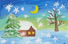 Цель: Учить детей передавать в рисунке картину зимы в поле, в лесу, в поселке. Закреплять умение рисовать разные дома и деревья. Учить рисовать, сочетая в рисунке разные материалы: цветные восковые мелки, сангину и белила (гуашь). Развивать образное восприятие, образные представления, творчество.
