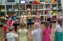 Сегодня с детьми младшей группы провели музыкальную игру "Веселая погремушка"