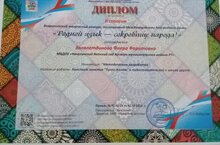 "Родной язык-сокровище народа!" и награждена дипломом II степени. Воспитателю желаем творческих успехов.
