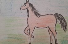 Цель: учить передавать образ коня, используя акварельные краски; рисовать характерные признаки: гриву, хвост, копыта; учить раскрашивать изображение в соответствии с окраской животного.